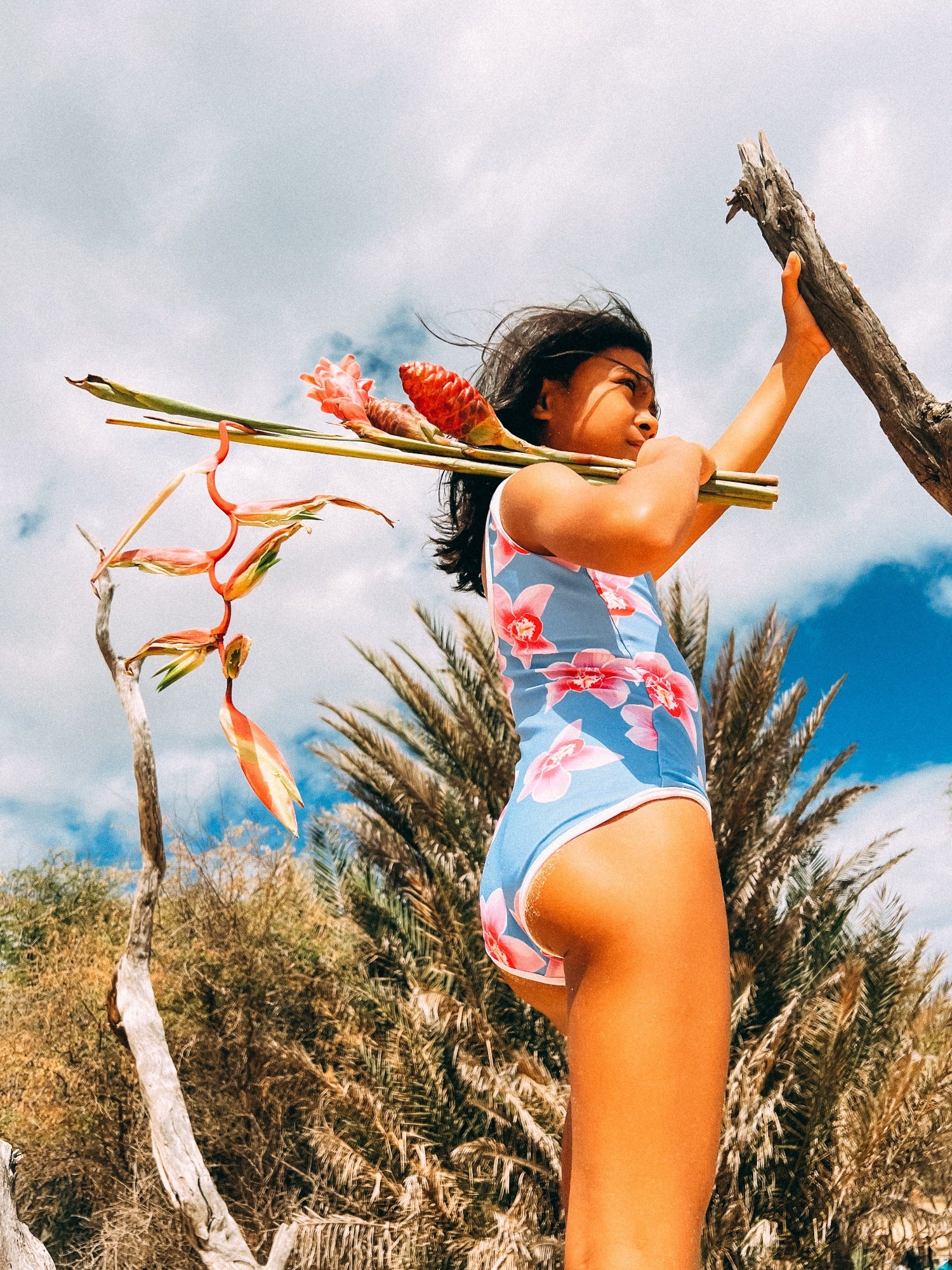 Please note that contact with rough surfaces and velcro fasteners should be avoided since they can pull out the white fibers in the fabric, damaging the swimsuit’s appearance.