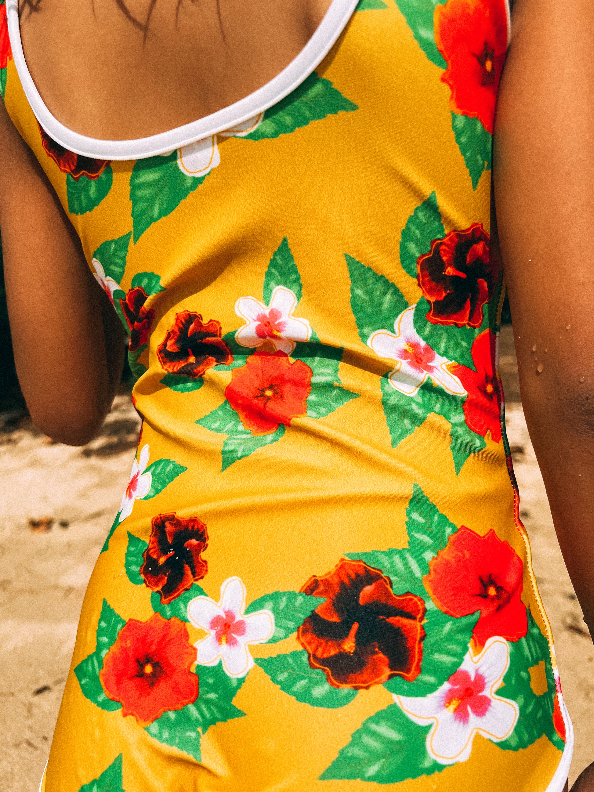 Please note that contact with rough surfaces and velcro fasteners should be avoided since they can pull out the white fibers in the fabric, damaging the swimsuit’s appearance.